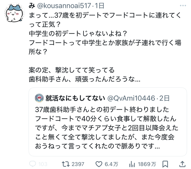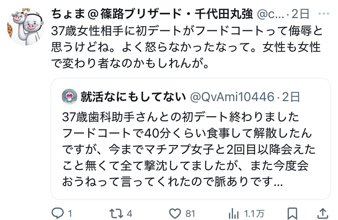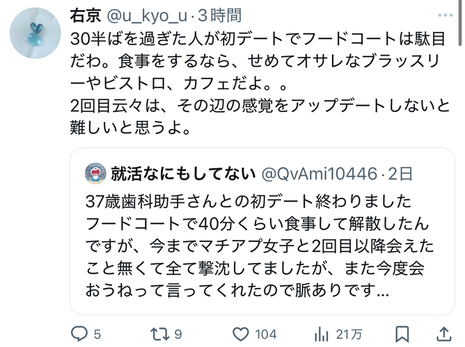 25歳が37歳に奢るならフードコートで正解やろ…