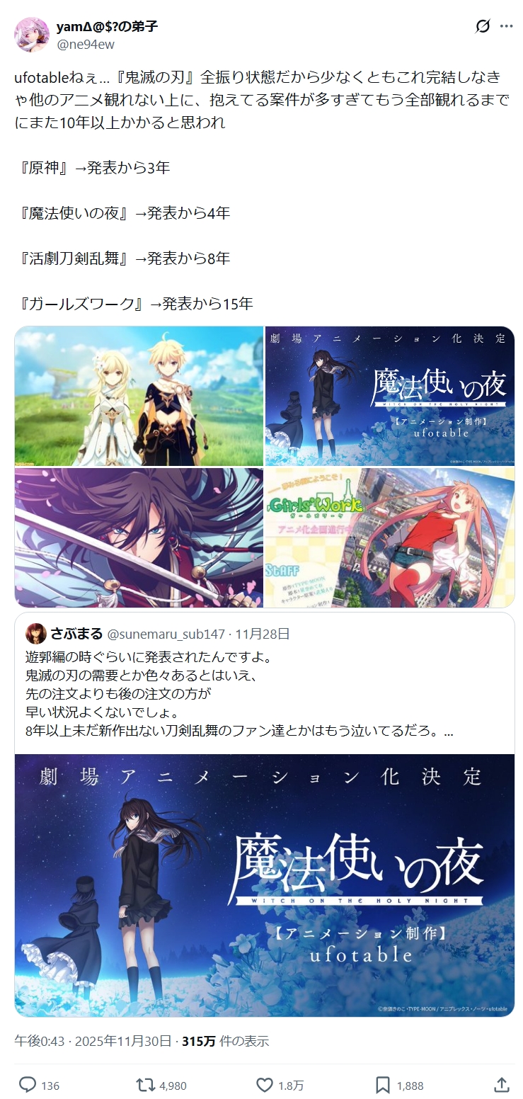 【悲報】ufotable、とんでもないことになっていた