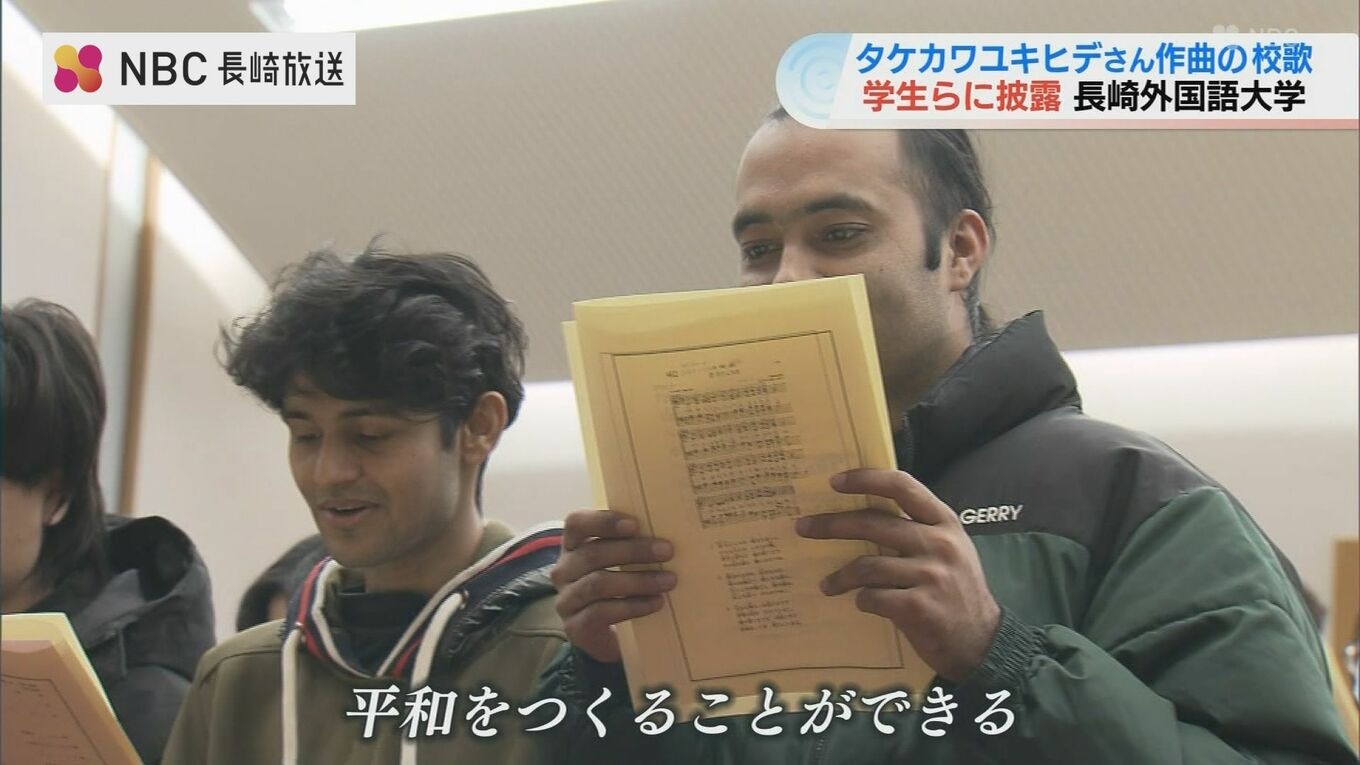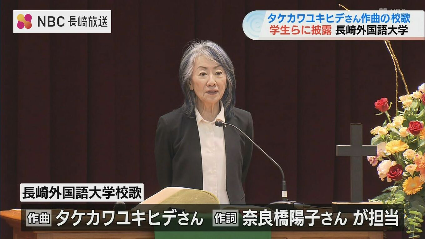 長崎外国語大学を運営する学校法人が創立80年を記念した校歌を制作し、11月26日、初めて学生らに披露されました。銀河鉄道999などの名曲を世に出した二人が作詞作曲を手がけています。