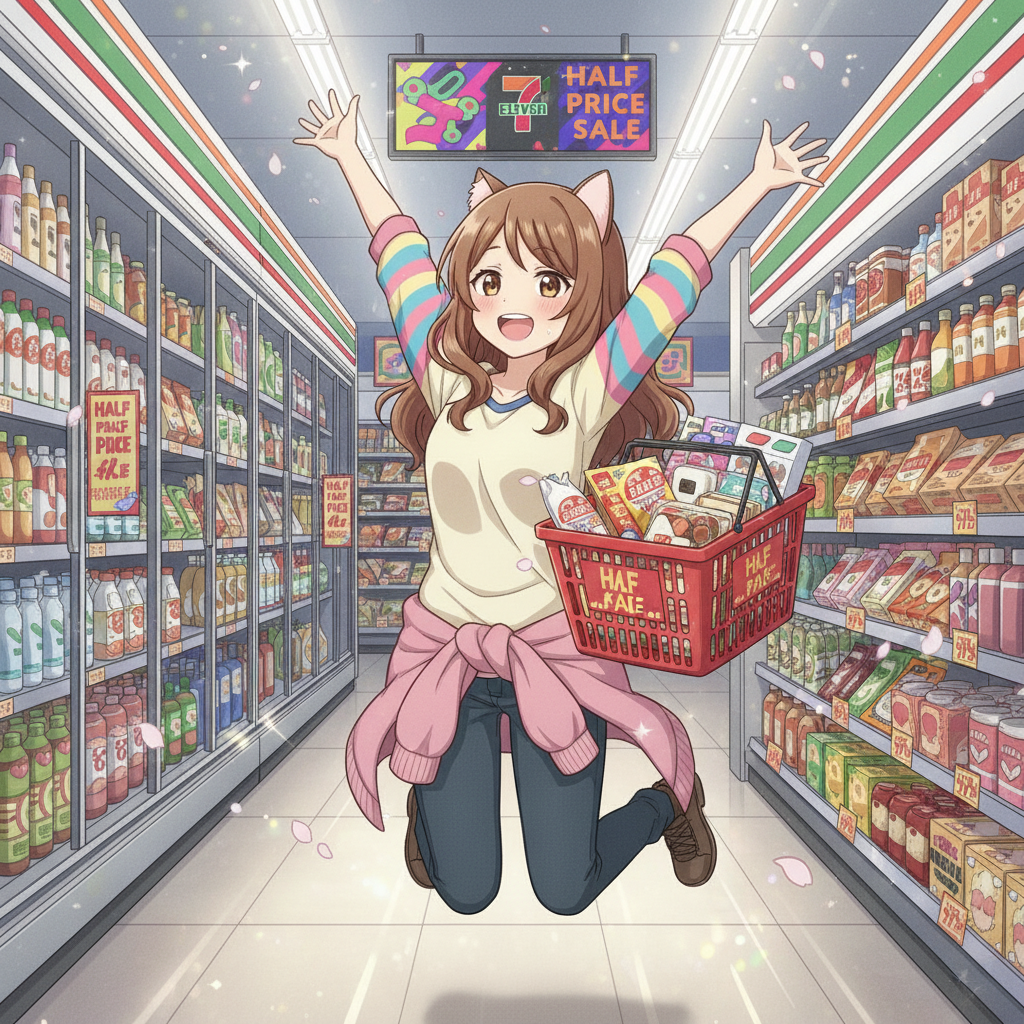 セブンイレブンで半額セールやるぞ\\\٩( 'ω' )و ////